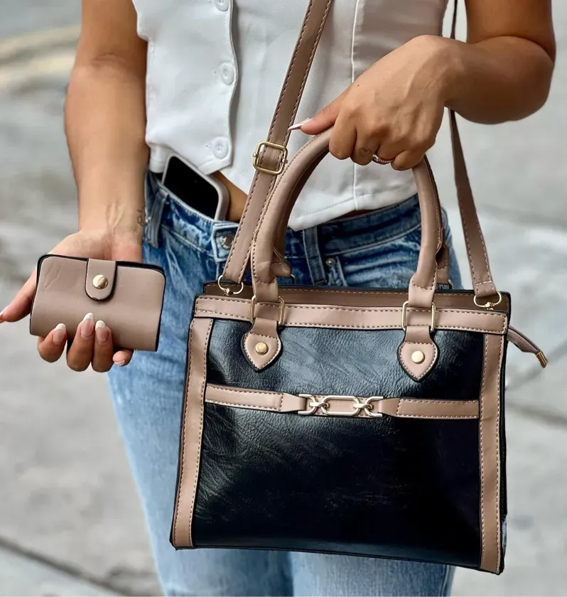 Cartera + Tarjetero Agustina Cuero PU COD 819-13 - Colores Surtidos